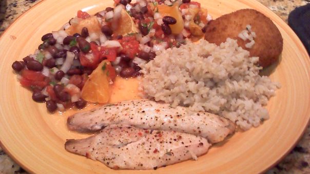 To prepare the bean and rice mixture, cook the rice according to package and keep warm while the tilapia is marinating.